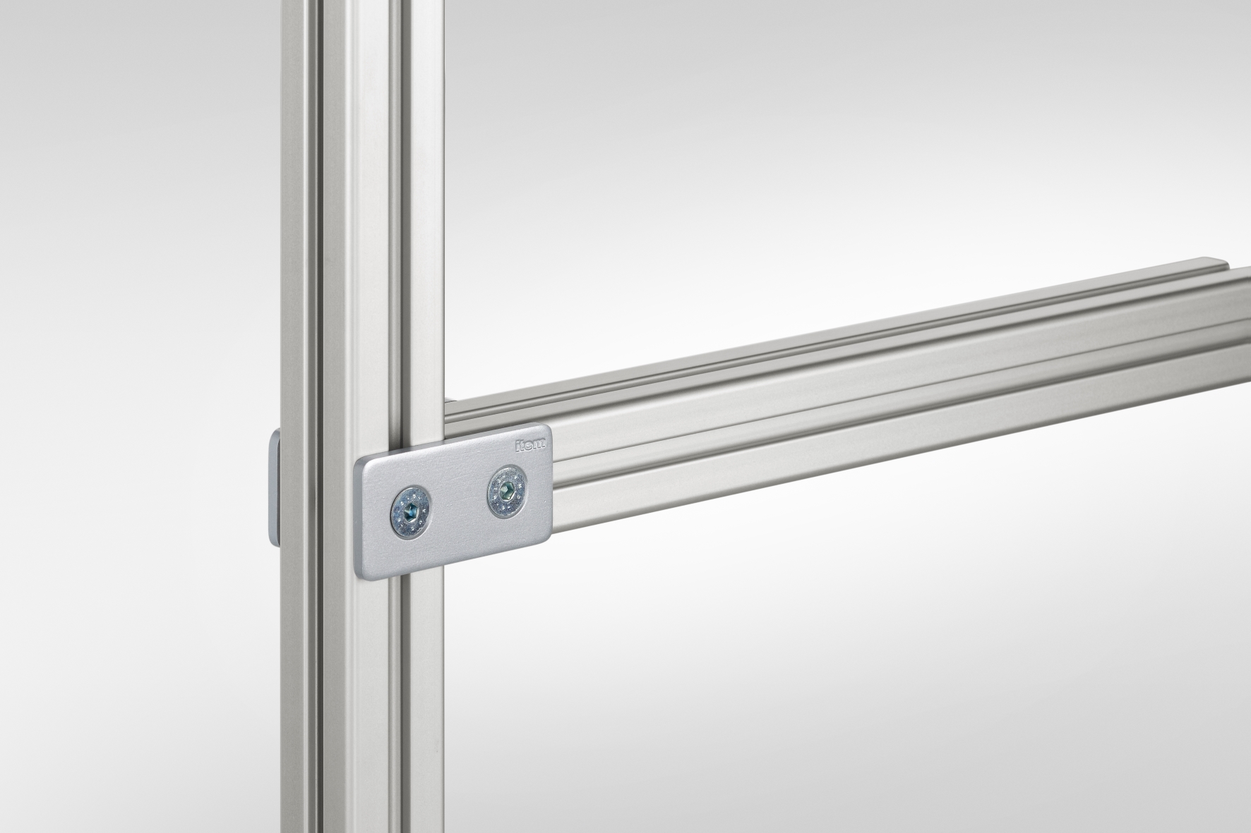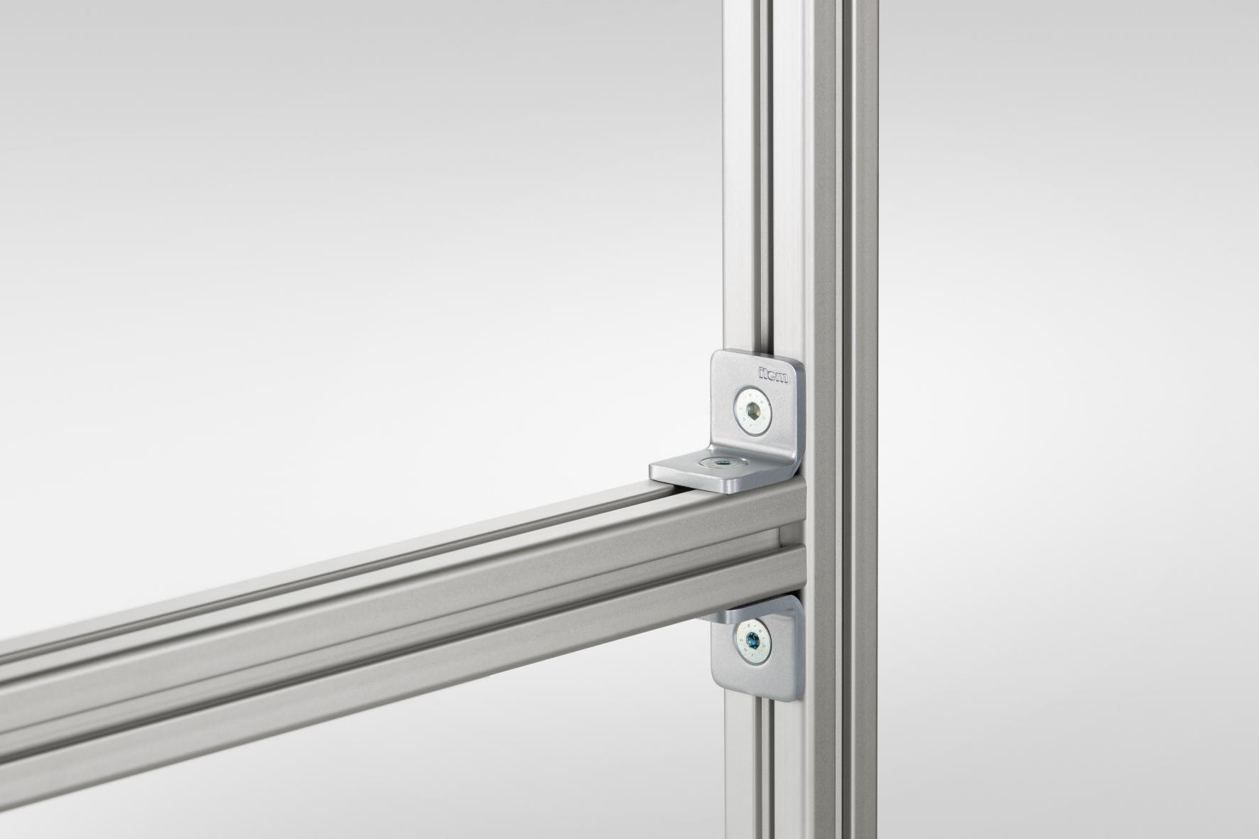 item now offers the new Angle Bracket 8 40 St and Bracket 8 80x40 flat St made of steel as a simple means of quickly reinforcing profile connections. These fastening elements can be retrofitted, perfectly accommodate both static and dynamic loads, and can be ideally combined with shelves and other panels.