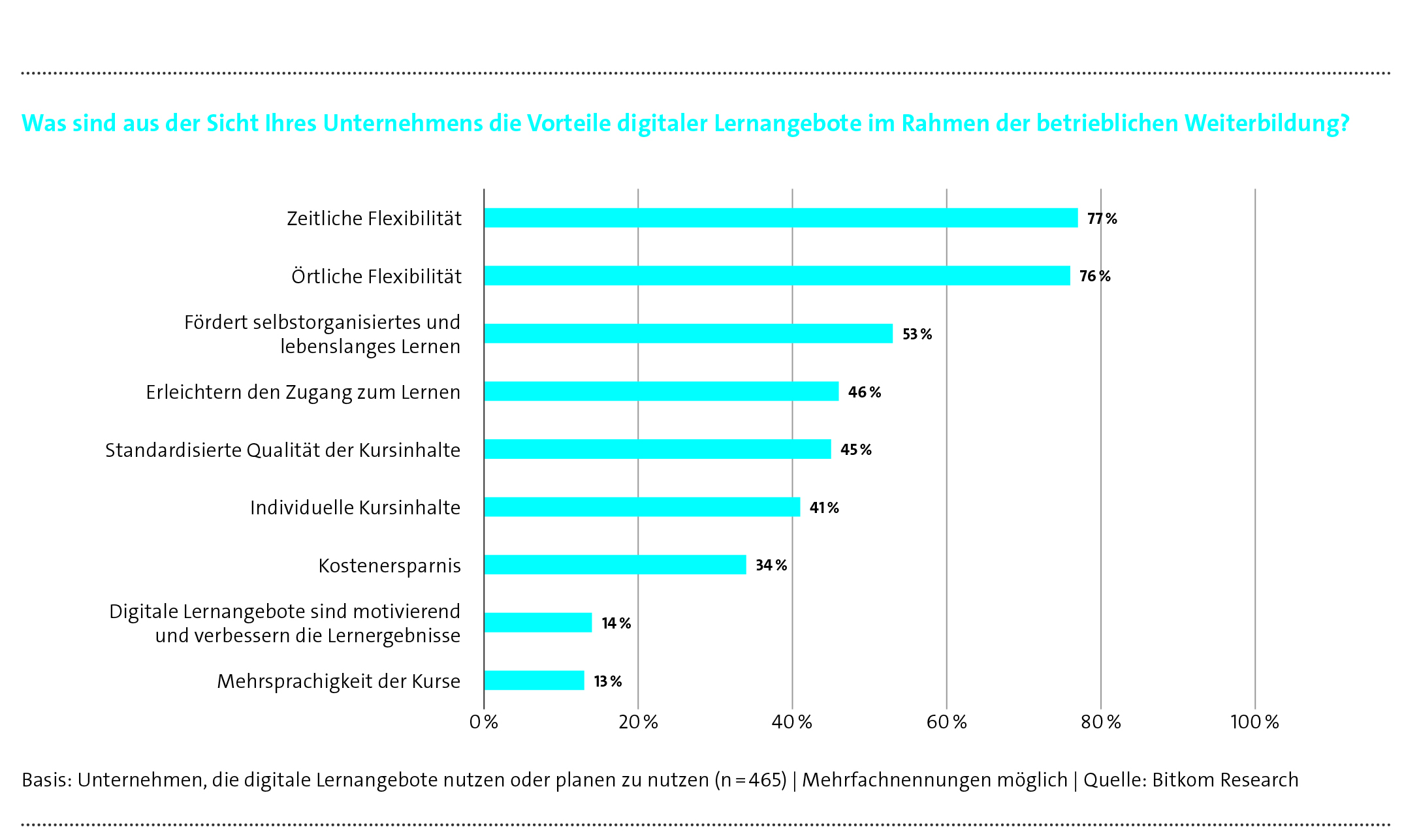 Caption 1: The results of the Bitkom Research study “Training for the digital world of work” show the benefits of e-learning as part of a vocational training strategy. Source: Bitkom Research