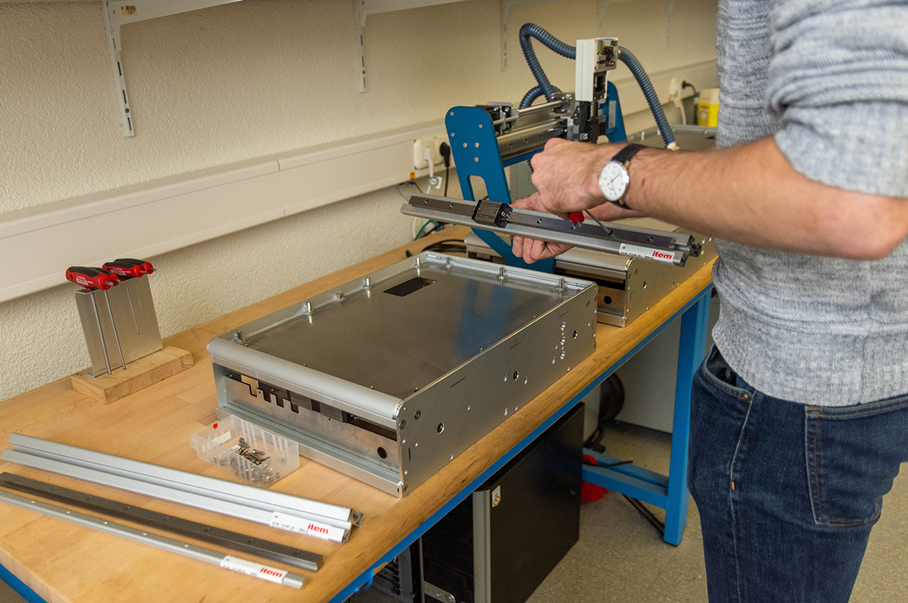 BioFluidix has many uses for item components beyond just building its BioSpot workstation. This innovative Freiburg-based company also uses item profiles, fasteners and fastening elements to implement customer-specific systems and machinery that call for a completely unique structure. BioFluidix develops and integrates different components, sensors and control concepts to create bespoke solutions to order. “What makes all the difference is that we can use item components to develop and implement the perfect devices very quickly and in the dimensions specified by the customer,” says the project manager. “We also make the most of being able to order pre-configured parts via the item website.” Initially, BioFluidix was still having its components machined by an intermediary supplier, but soon realised this additional step was unnecessary. item offers profiles with high-precision cut-offs directly via its Online Shop. These keep to all tolerances, meaning BioFluidix can manufacture the devices as soon as they receive the parts. Profiles are selected and designed using the item Engineeringtool. BioFluidix integrates the 3D data for the appropriate configuration into its own CAD environment and orders the prefabricated construction kits directly through the website. “It’s easy and convenient to purchase the parts via the Online Shop instead of sending an order by e-mail and having to specify parts lists and tolerances, and, in some cases, negotiate prices,” says the project manager. Orders are placed with item through an online account that has been configured perfectly for BioFluidix. All conditions and agreements are stored there, which means orders can be processed quickly and reliably. As a result, item can supply a smart solution for all design variants. The entire process takes only a few days – from the initial order until the prefabricated components arrive. Since BioFluidix takes a “build-to-order” approach to production and does not keep warehouse stock, it is crucial that components are delivered on time. “In item, we have found a partner that delivers orders quickly and reliably,” says the CTO of BioFluidix. “For instance, there have been no break-downs or complaints in the many years we’ve been working together.”